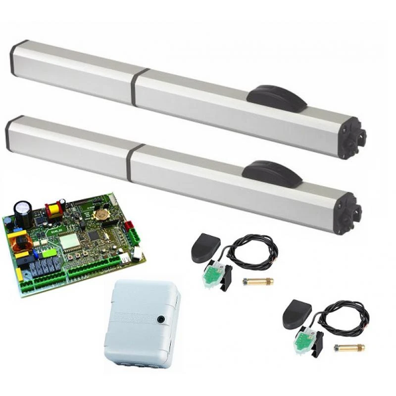 Ensemble comprenant un moteur hydraulique pour portail battant alnt jusqu’à 2,20 m par vantail dans le cadre d’une utilisation collective, industrielle ou tertiaire. La particurité de cet opérateur est de s’adapter à une fréquence d’utilisation importante ainsi qu’à des portails de très grandes tailles grâce à son système hydraulique et à sa puissance. Une nouvelle électronique de gestion (SAFEcoder) assure une meilleure sécurité grâce à un système anti-écrasement hydraulique et d’évitement d’obstacle correspondant aux exigences européennes. Ce moteur se décline en plusieurs versions proposant ainsi un automatisme avec ou sans verrouilge à fermeture ou à l’ouverture, suivant vos besoins et taille de votre portail.