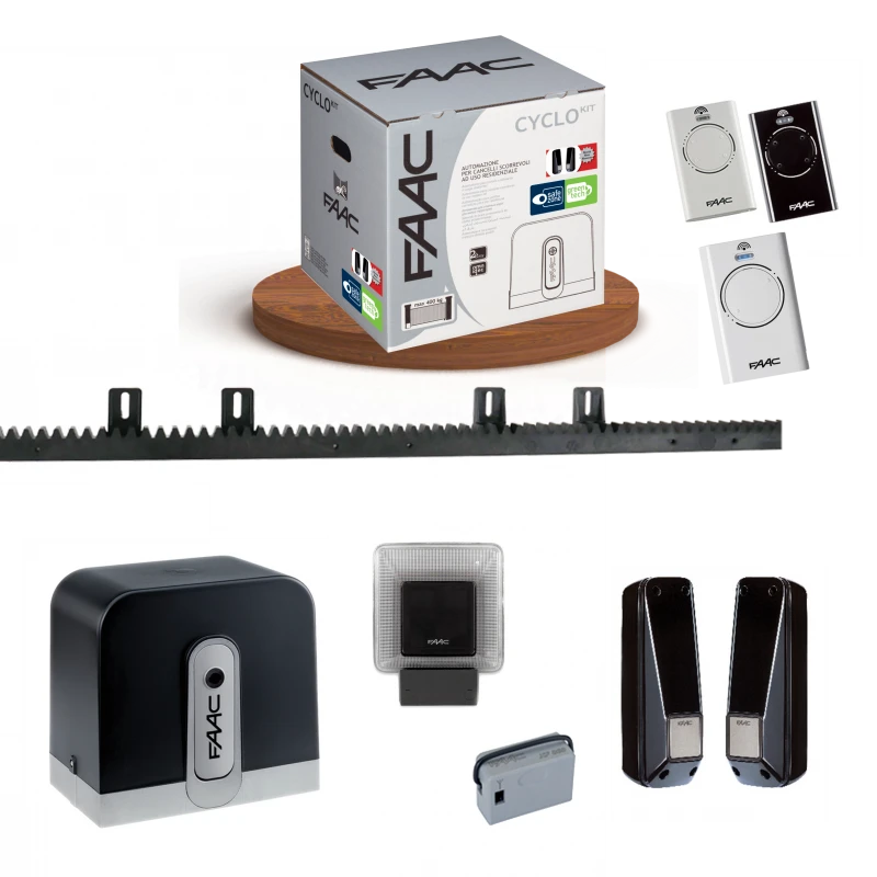 Nouveau principe de réduction (brevet FAAC) pour ce Kit FAAC C720 Cyclo Integral. Rendement mécanique très élevé >80%. Ptine électronique de contrôle avec dispositif anti-écrasement et encodeur virtuel avec fonction d’inversion sur obstacle. Fins de course magnétiques. Ce Kit FAAC C720 peut être alimenté par panneaux soires « Sun Wire ».