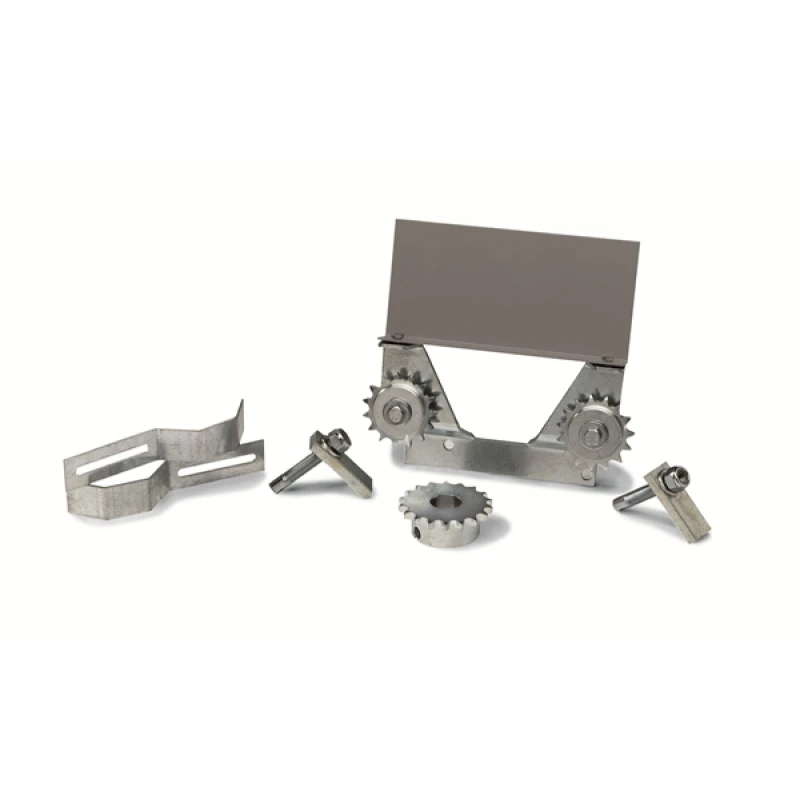 SYSTÈME DE TRANSMISSION CAME Dispositif permettant de modifier le fonctionnement de l’automatisme avec une crémaillère en ajoutant un système par chaîne. Particulièrement adapté aux moteurs de portail coulissant de gamme BK.